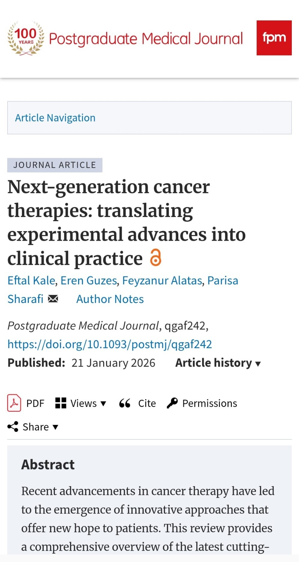“Next Generation Cancer Therapies: Translating Experimental Advances to Clinical Practice” Başlıklı Derleme Makale, Q1 Kategorisinde Yer Alan Postgraduate Medical Journal’da Yayımlandı!