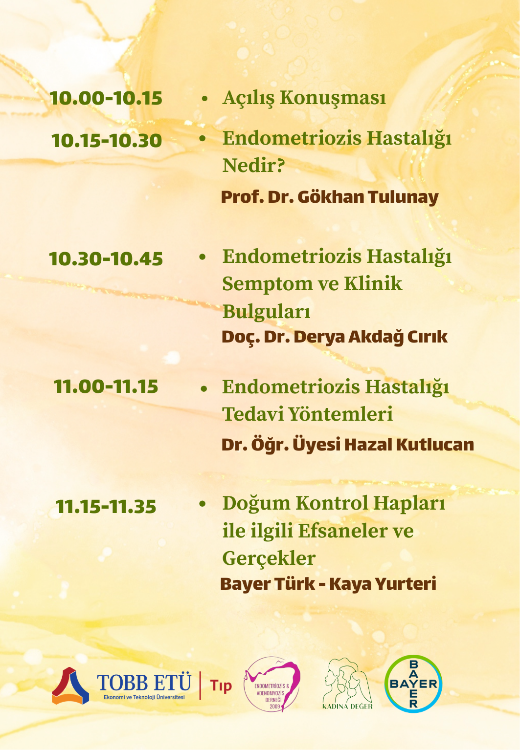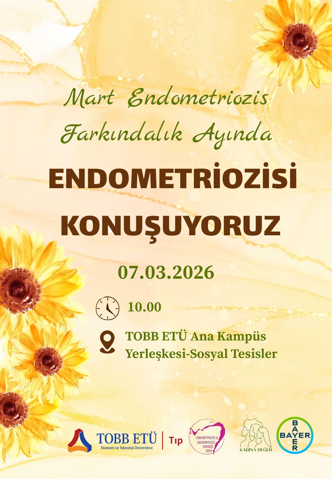 07 Mart 2026’da TOBB ETÜ Ana Kampüs Sosyal Tesisler’de gerçekleştireceğimiz etkinliğimizde; alanında uzman konuşmacılar eşliğinde Endometriozisin tanımı, belirtileri ve tedavi yöntemlerini ele alacak, doğum kontrol haplarıyla ilgili doğru bilinen yanlışları bilimsel çerçevede konuşacağız.
