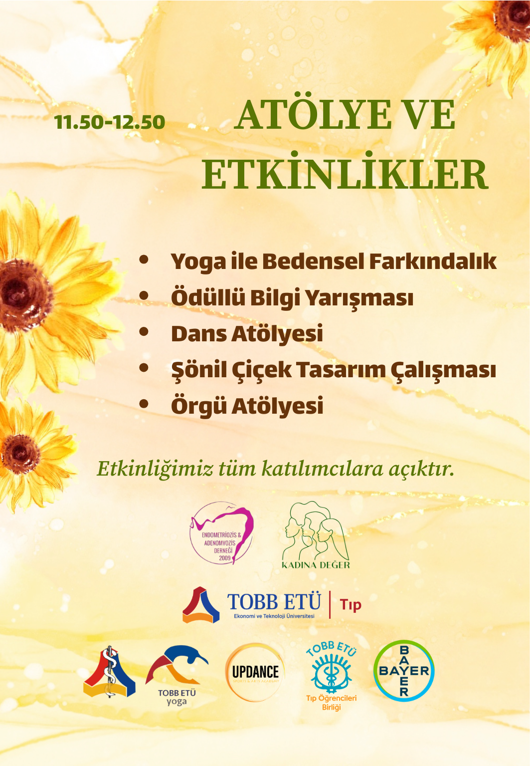 Etkinliğimiz tüm katılımcılara açıktır. Kadın sağlığına dair farkındalığı birlikte artırmak için sizleri aramızda görmekten mutluluk duyarız.