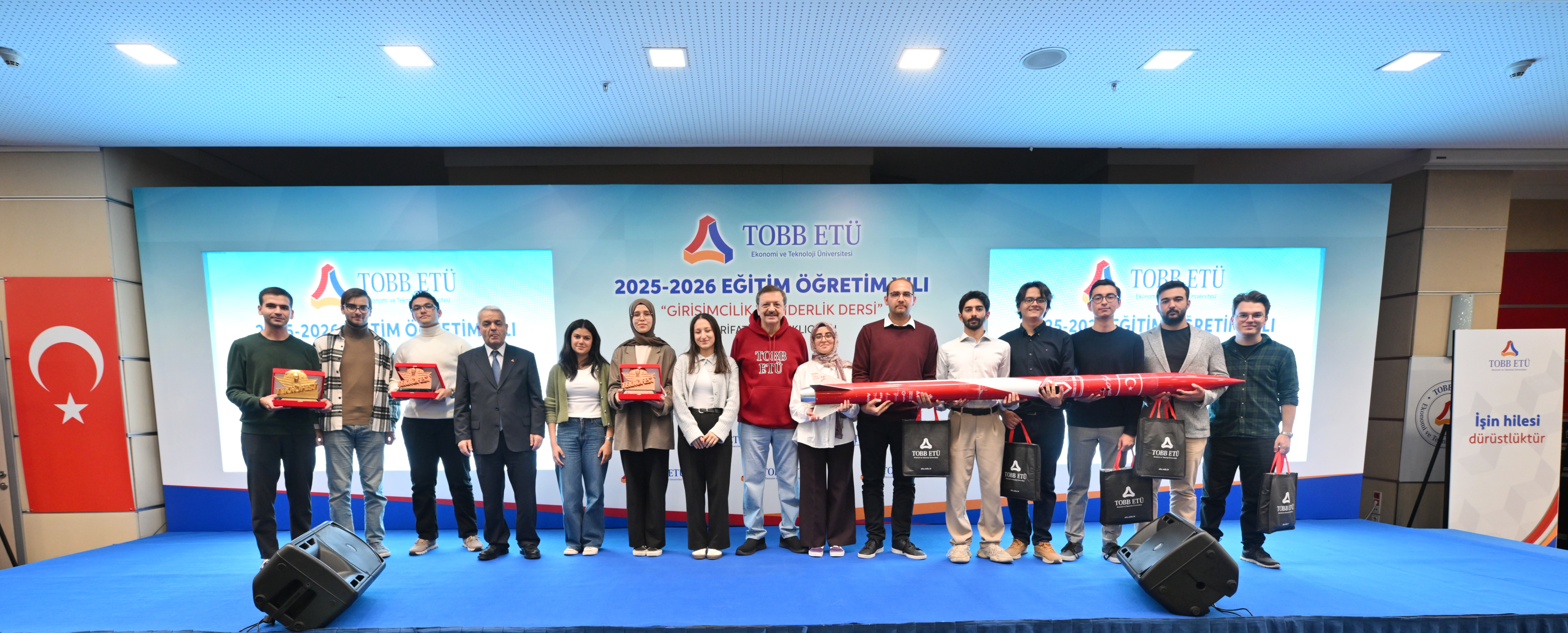 Ders kapsamında ayrıca 2025 TEKNOFEST’te başarı elde eden TOBB ETÜ Roket Takımı, Hueman Takımı, NebulAI Takımı, Kasırga Anka takımlarımıza hediyeleri takdim edildi.