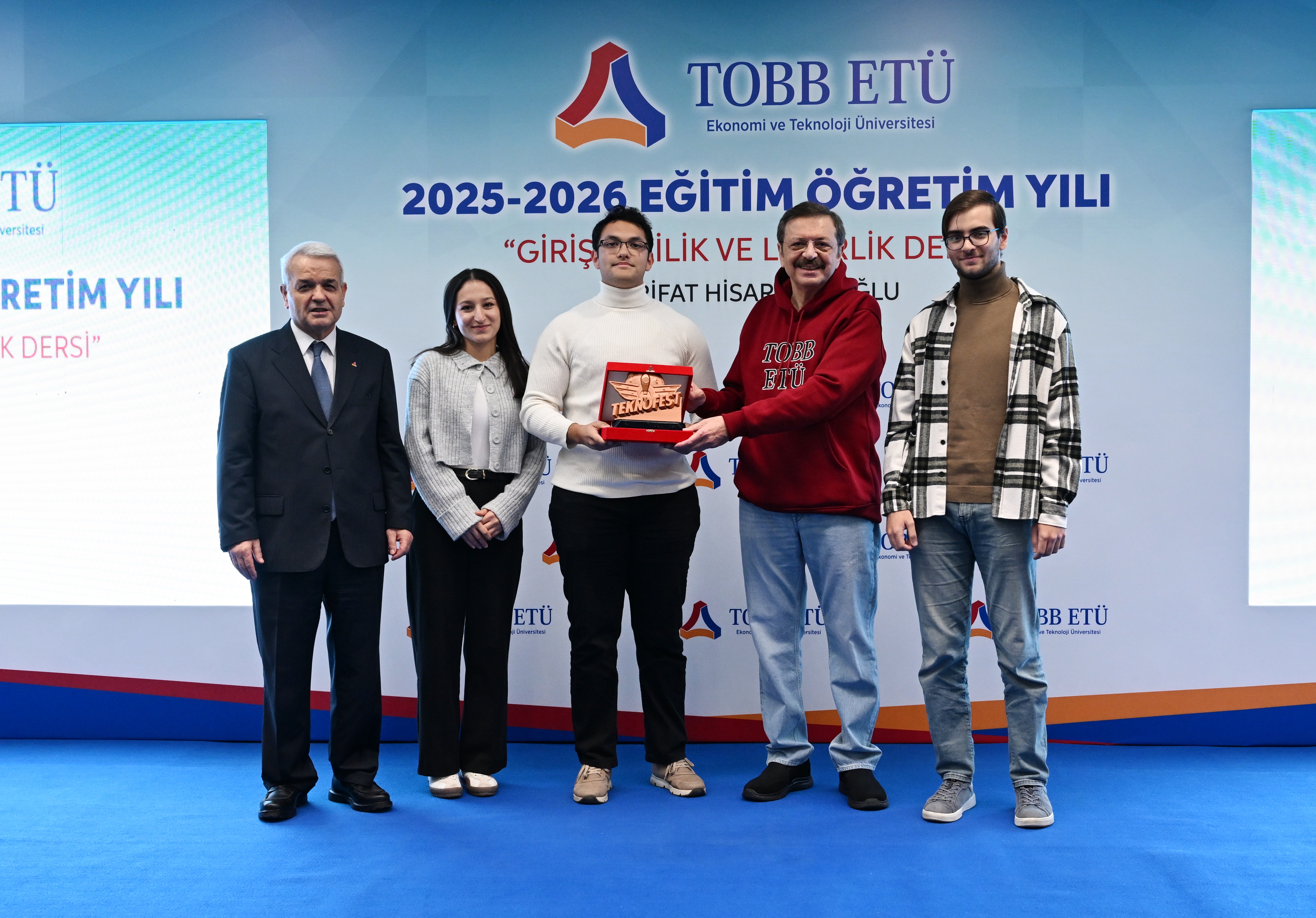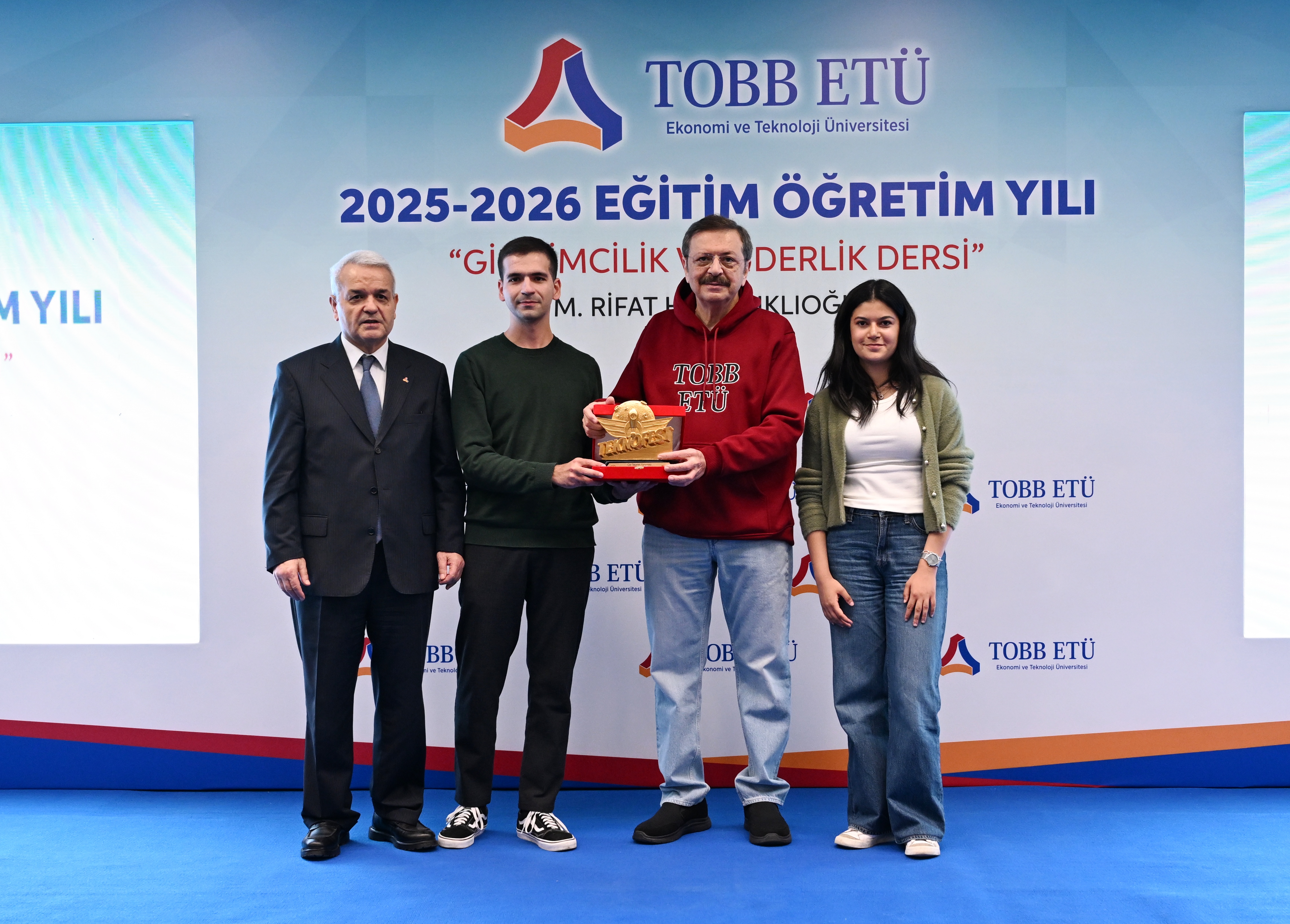Türkiye Odalar ve Borsalar Birliği (TOBB) Başkanı ve TOBB ETÜ Mütevelli Heyet Başkanı M. Rifat Hisarcıklıoğlu, TOBB ETÜ'de 2025-2026 Eğitim Öğretim Yılı "Girişimcilik ve Liderlik" dersinde öğrencilerle buluştu.