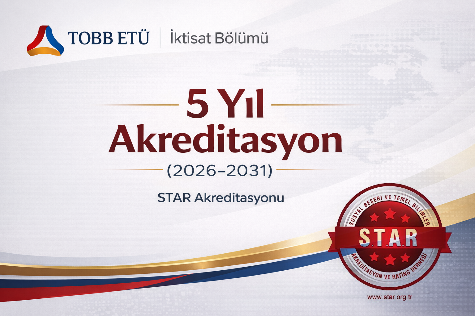 TOBB ETÜ İktisat Bölümü lisans programı, Sosyal Beşeri ve Temel Bilimler Akreditasyon ve Rating Derneği (STAR) tarafından yürütülen değerlendirme süreci sonucunda, 11 Mart 2026 - 11 Mart 2031 dönemini kapsayacak şekilde beş yıl süreyle akredite edildi.