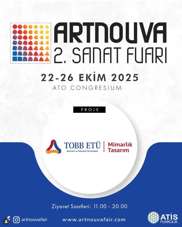 Ankara ATO Congresium’da 22-26 Ekim 2025 tarihleri arasında bu yıl ikincisi düzenlenen ArtNouva Sanat Fuarı TOBB ETÜ İÇT bölümüne ev sahipliği yapmaktadır.