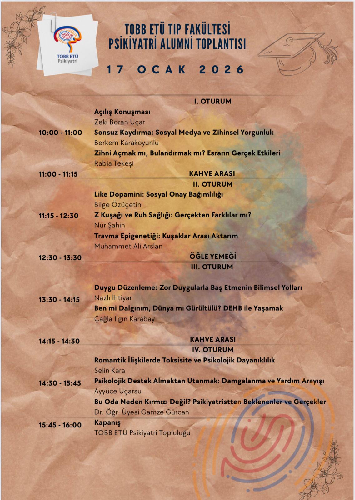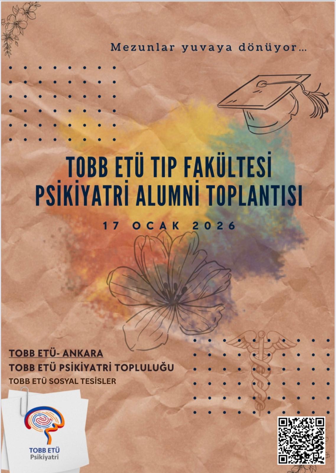TOBB ETÜ Psikiyatri Topluluğu tarafından, 17 Ocak 2026 tarihinde TOBB ETÜ Tıp Fakültesi Psikiyatri Alumni Sempozyumu başarıyla gerçekleştirilmiştir. Sempozyum, ruh sağlığı alanında güncel gelişmelerin ele alındığı, mezunlar ve öğrencileri bir araya getiren verimli bir akademik paylaşım ortamı sunmuştur.