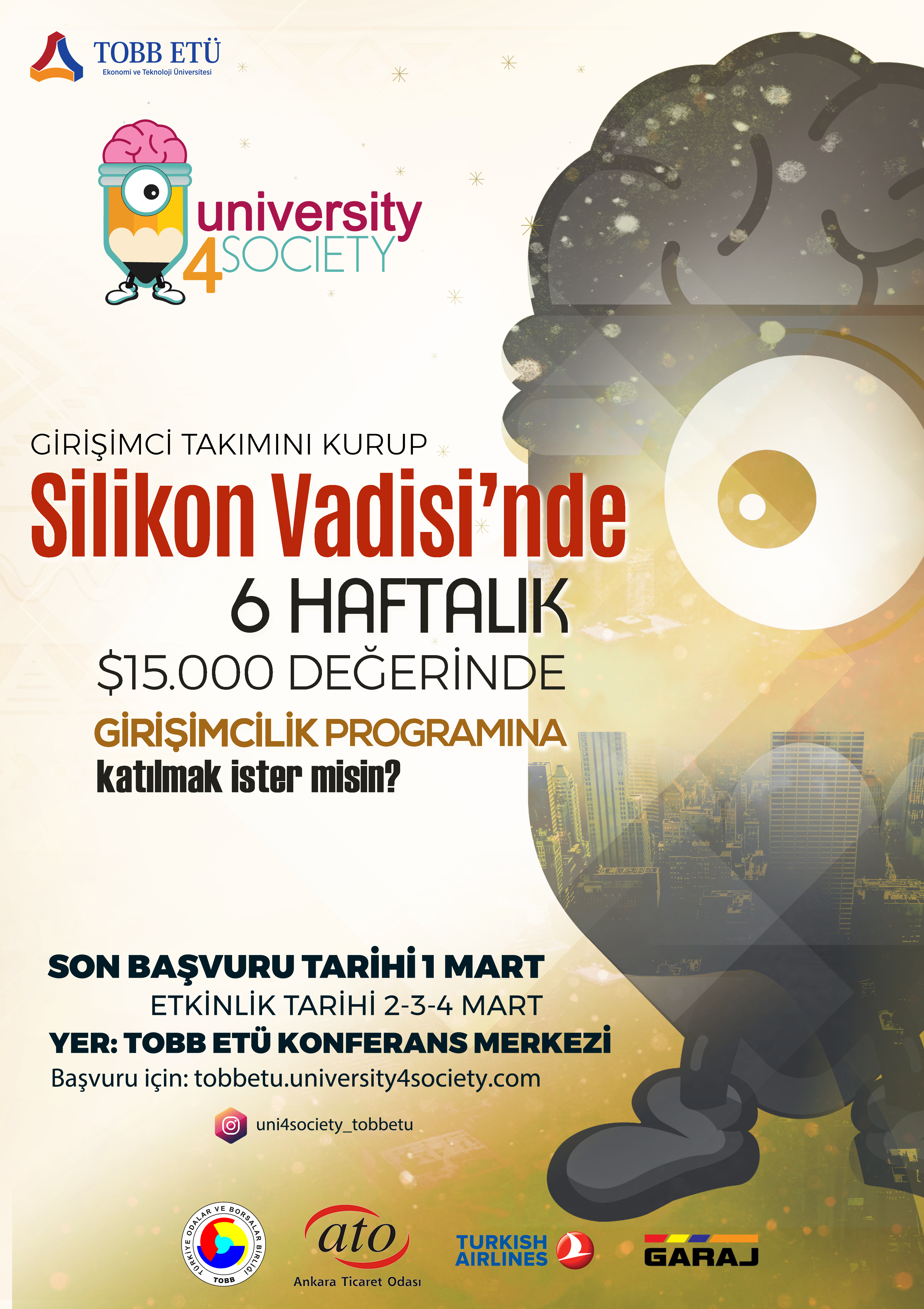 Silikon Vadisi’nde, $15.000 değerinde 6 haftalık girişimcilik programına katılmak için hak kazanmak ister misiniz? O zaman University4Society TOBB ETÜ’ye katılmalısınız!