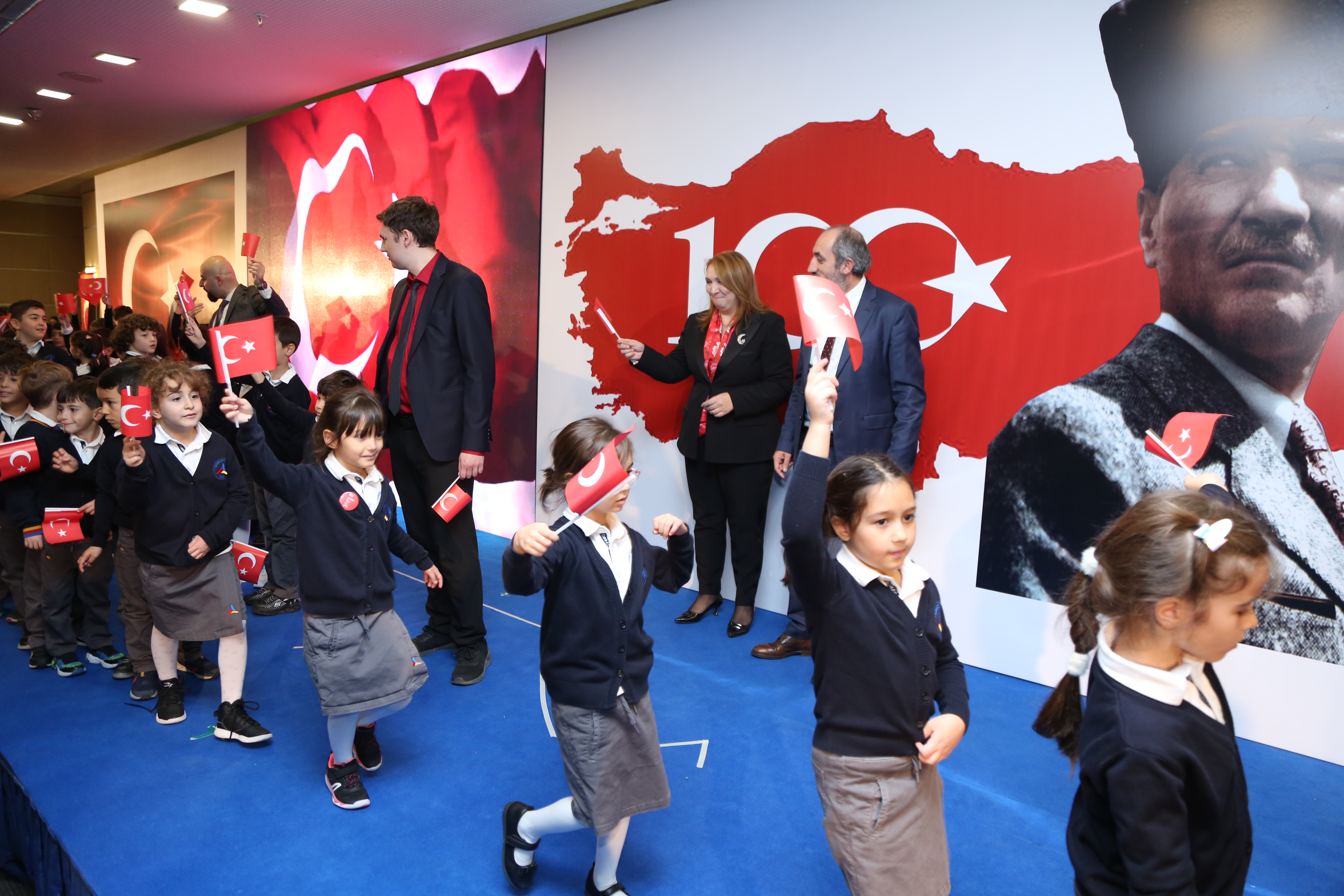 TOBB ETÜ Koleji tarafından hazırlanan, Rektörümüz Prof. Dr. Yusuf Sarınay ve Genel Sekreterimiz Prof. Dr. Olgun Değirmenci’nin de katılımlarıyla gerçekleşen program, üniversitemiz Konferans Merkezinde kolej öğrenci ve öğretmenlerimizin bayraklar ve Cumhuriyet pankartlarıyla yaptıkları geçit töreni ve marşlarla başladı.