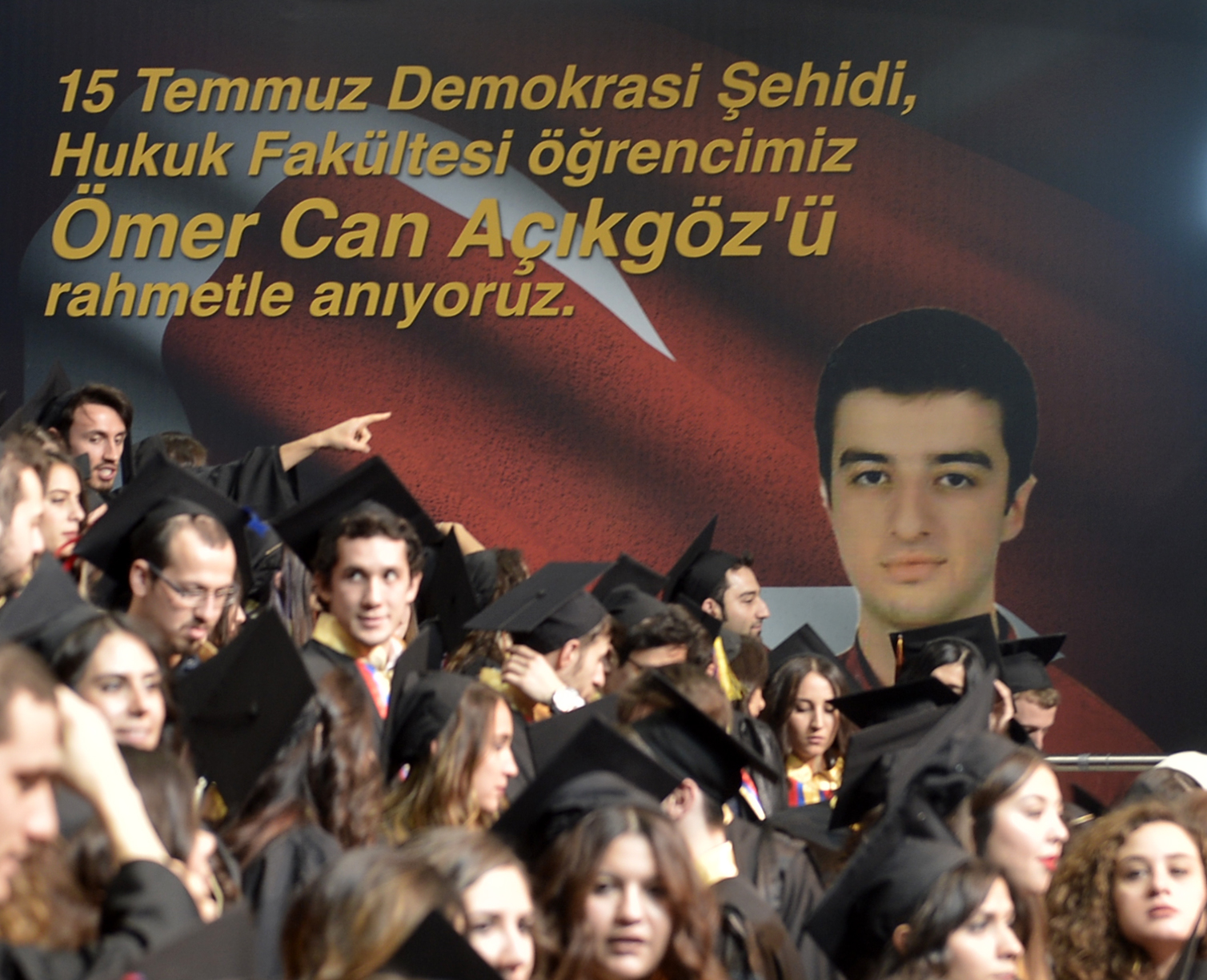 15 Temmuz Darbe Teşebbüsü gecesi şehitlik mertebesine ulaşıp genç yaşında aramızdan ayrılan Ünivesitemiz Hukuk Fakültesi öğrencisi Ömer Can Açıkgöz'ün anıldığı ve gazilik şerefine nail olan öğrencilerimiz Hanifi Can Türkoğlu, Taha Bilgin ve Yusuf Balıkçı Mütevelli Heyet Başkanımız Sayın M. Rifat Hisarcıklıoğlu tarafından sahneye davet edilerek onurlandırıldılar.