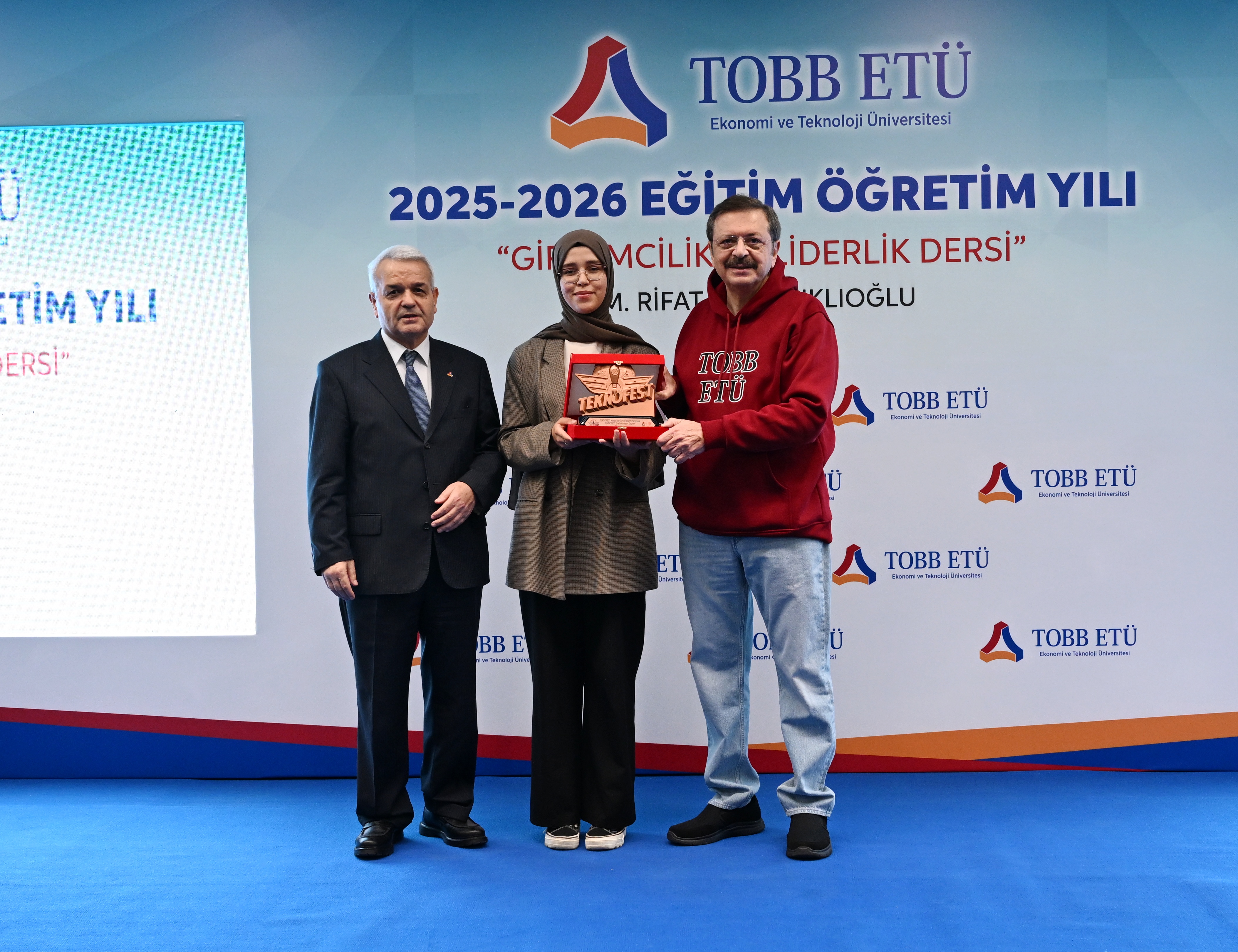 Ders kapsamında ayrıca 2025 TEKNOFEST’te başarı elde eden TOBB ETÜ Roket Takımı, Hueman Takımı, NebulAI Takımı, Kasırga Anka takımlarımıza hediyeleri takdim edildi.