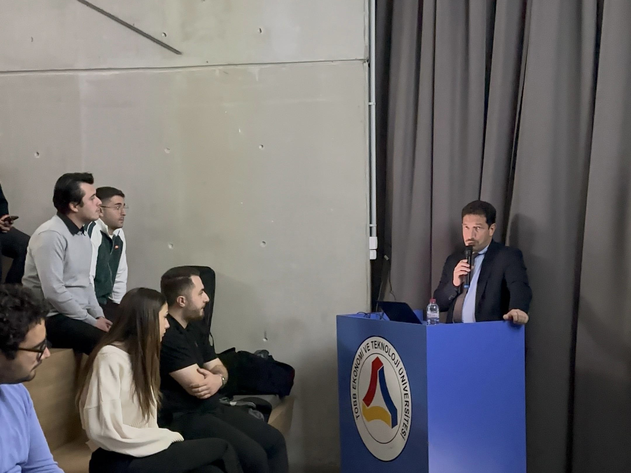 1 Aralık 2025 tarihinde, İklim Değişikliği Bakanlığı Başkan Yardımcısı Sayın Orhan Solak, TOBB ETÜ kampüsümüzde UGİ 322 dersi kapsamında konuk konuşmacı olarak yer aldı.