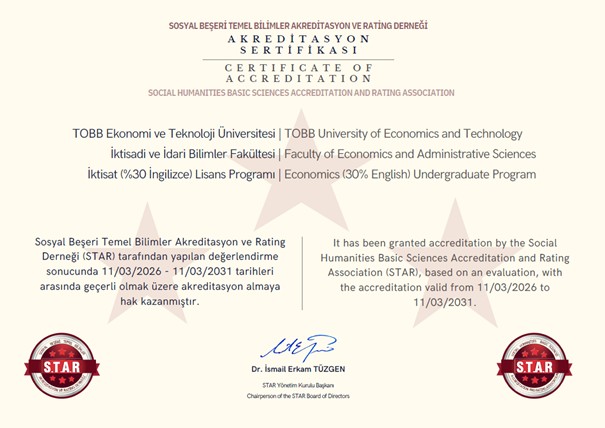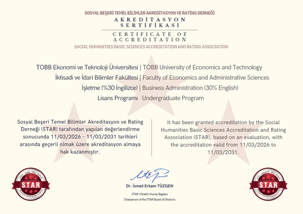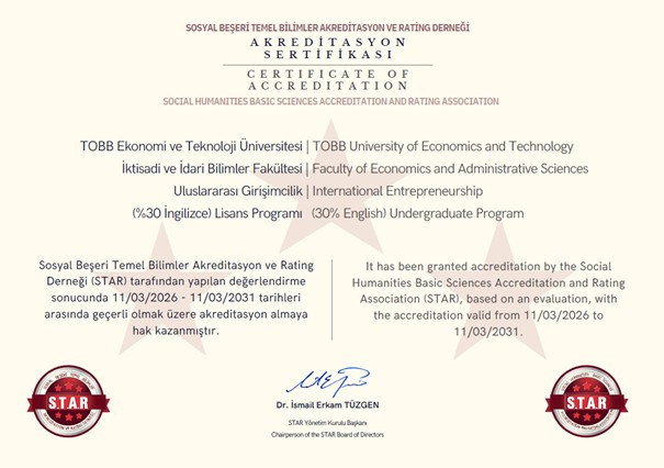 Elde edilen bu önemli başarı, TOBB ETÜ’nün nitelikli yükseköğretim anlayışının ve kurumsal kalite güvencesi yaklaşımının güçlü bir yansıması niteliğindedir.