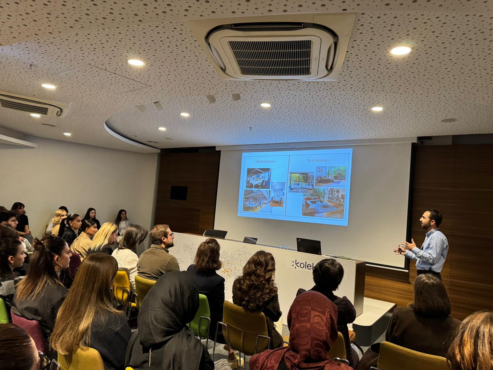 Etkinlik kapsamında öğrenciler, Koleksiyon Mobilya’nın tasarım anlayışı, üretim süreçleri ve marka felsefesi hakkında detaylı bilgi edinme fırsatı buldular. Ziyaret sırasında, Handan Akyol ve proje ekibi tarafından Koleksiyon’un tasarım yaklaşımı, malzeme tercihleri ve kullanıcı odaklı üretim stratejileri üzerine kapsamlı bir sunum gerçekleştirildi.