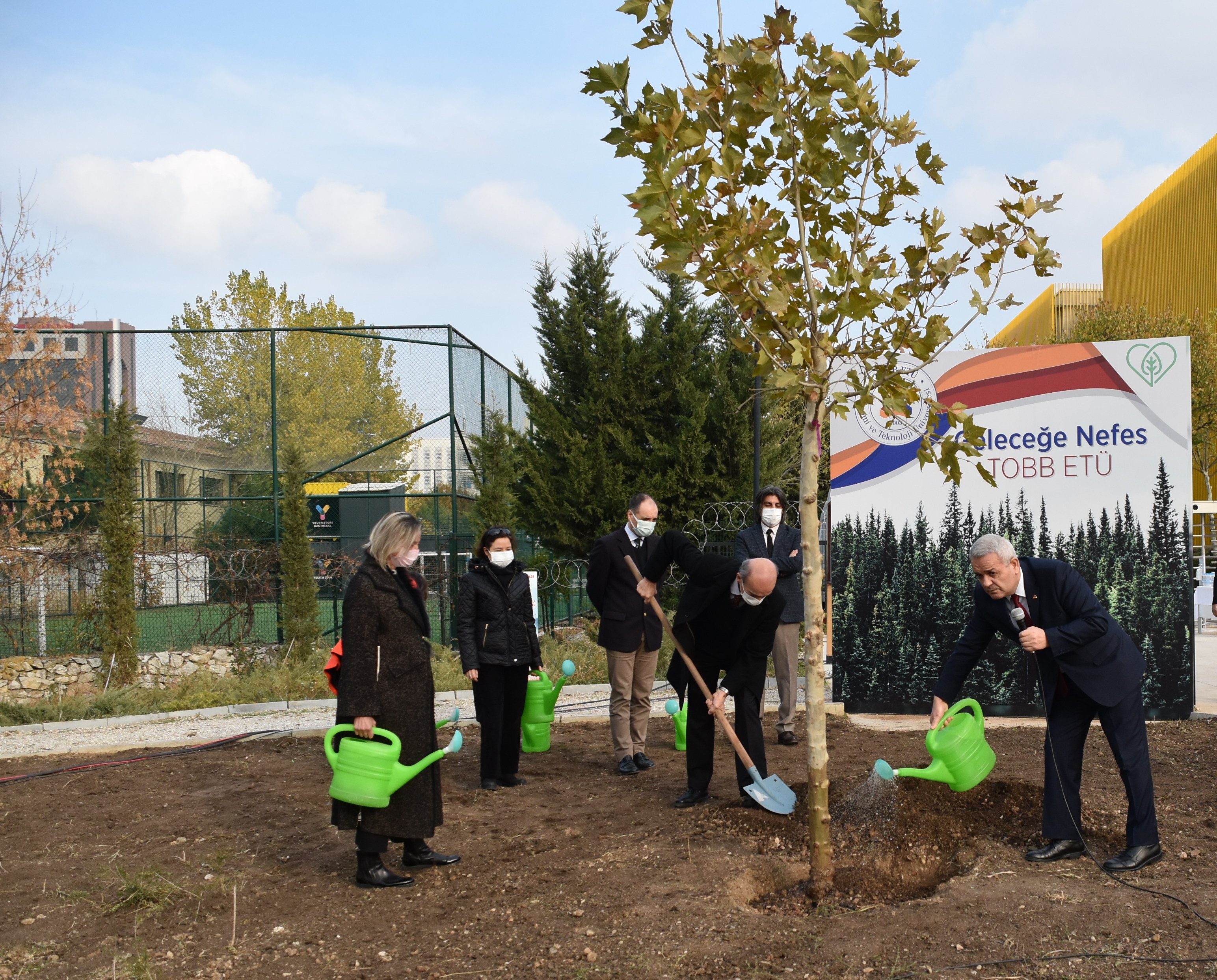 18 Kasım 2020 tarihinde TOBB İkiz Kuleler’de gerçekleşen TOBB Türkiye Ekonomi Şurasına katılan Cumhurbaşkanımız Sn. Recep Tayyip Erdoğan ile TOBB Başkanı ve TOBB ETÜ Mütevelli Heyet Başkanı Sayın M. Rifat Hisarcıklıoğlu, fidan dikimi için TOBB ETÜ Rektörü Sayın Prof. Dr. Yusuf Sarınay’a uydu üzerinden bağlandılar. Bağlantı esnasında, 2019 yılında TOBB ETÜ yerleşkesi içinde kurulan TOBB ETÜ Hatıra Ormanına Cumhurbaşkanımız Sn. Recep Tayyip Erdoğan adına çınar ağacı fidanı dikildi.