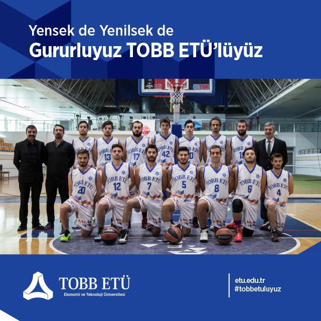 TOBB ETÜ Basketbol Takımımız, ÜNİLİG ve TÜSF olmak üzere iki ayrı zorlu ligde birden mücadele ediyor. TÜSF 2. Lig Basketbol Turnuvasında Üniversitemiz Erkek Basketbol Takımı namağlup olarak şampiyon oldu. 12 üniversite takımının 1. Lige çıkmak için 5 gün boyunca mücadele ettikleri turnuva sonunda TOBB ETÜ Basketbol takımı 1. Lige yükselmeyi başardı. Sıra ÜNİLİG'de! Bizler de TOBB ETÜ ailesi olarak, yoğun ders programlarının yanında Üniversitemizi katıldıkları maçlarda temsil eden Takımımızı gönülden destekliyoruz. Yensek de Yenilsek de Gururluyuz, TOBB ETÜ'lüyüz!